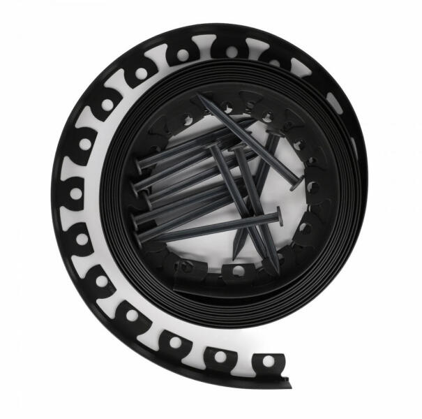 Paraméterek, termékleírás - Kerti ágyásszegély szett flex fekete 5 cm x 10 m 20 db leszúrótüskével (FLEX5X10F)