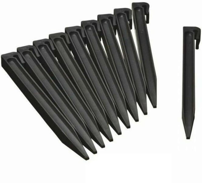 Nature Kerti Szegélyrögzítő Cövek - 10 db, Fekete Könnyedén alakítsd ki álmaid kertjét ezzel a 10 darabos fekete kerti szegélyrögzítő cövek készlettel! Ideális virágágyások, gyepszegélyek formázásához és épen tartásához. ? Előnyök:Könnyű telepítés: Egyszerűen rögzíthető a szegélyhez. Tartós anyag: Újrahasznosított polipropilénből készült, így időtálló és strapabíró. Esztétikus megjelenés: Diszkrét fekete szín, amely harmonikusan illeszkedik a kertbe. Praktikus kiszerelés: 10 db cövek egy csomagban. Környezetbarát: Újrahasznosított anyagból készül. Tulajdonságok:Szín: Fekete Anyag: Polipropilén Méret: 1,9 x 1,8 x 26,7 cm (Szé x Mé x Ma) Mennyiség: 10 db